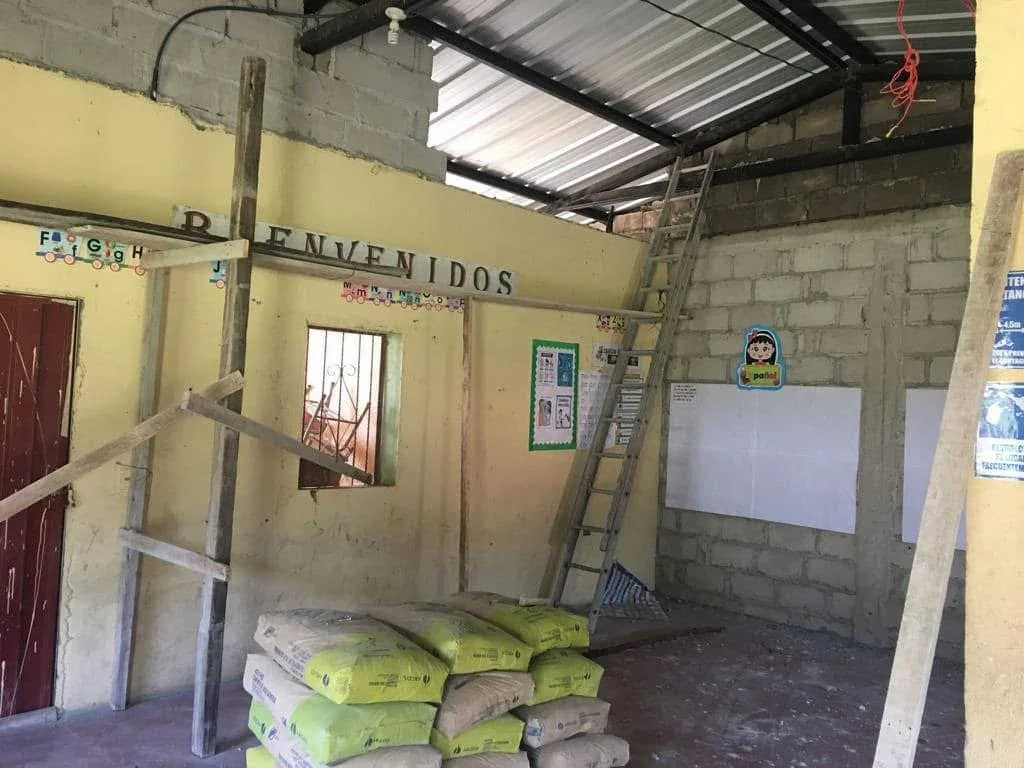 This school in La Paz serves many children and adults from the community.. When we visited in June of 2022, they requested help to repair two classrooms which currently serve 80 total students, first graders in the mornings and fifth graders in the afternoons. Operation. La Paz completed the walls and tied them into the roof, provided electricity, windows, and floor tile. This work was overseen by our local project supervisor Rafa and completed in August of 2022